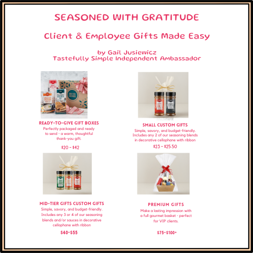 #TastefullySimple #TSbyGailJ #GiftIdeas #QuickGifts #TeacherGifts #HostessGifts #CorporateGifts #ClientGifts #EmployeeAppreciation #FoodieGifts #HolidayGifts #EasyGifting #SupportSmallBusiness #GailJGiftGuide